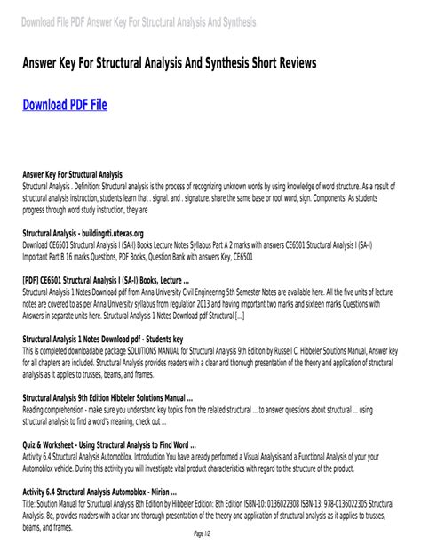 Download online STRUCTURAL ANALYSIS AND SYNTHESIS ANSWER KEY Audio CD